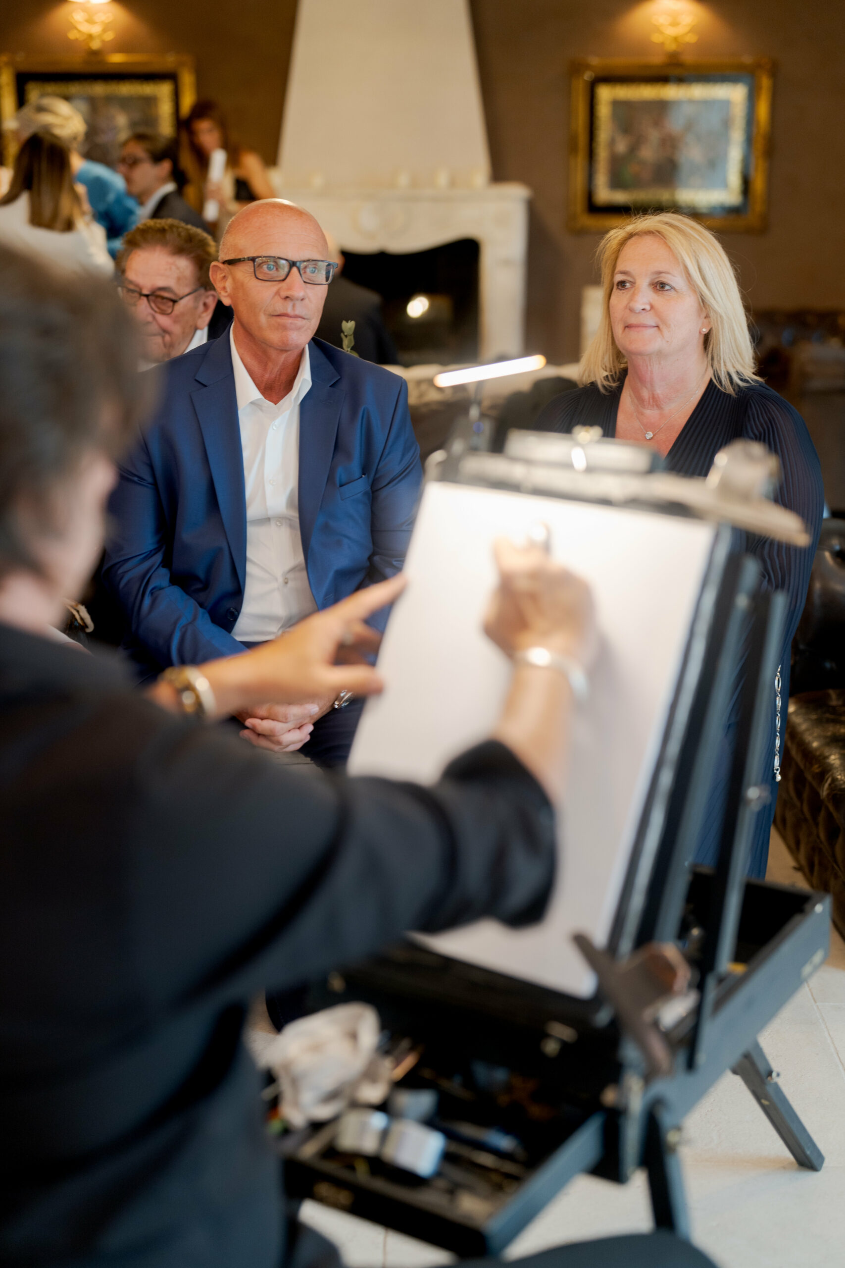To match this unique setting, invite Arno, a professional caricaturist who transforms live drawing into an elegant and captivating experience across Corsica and France.